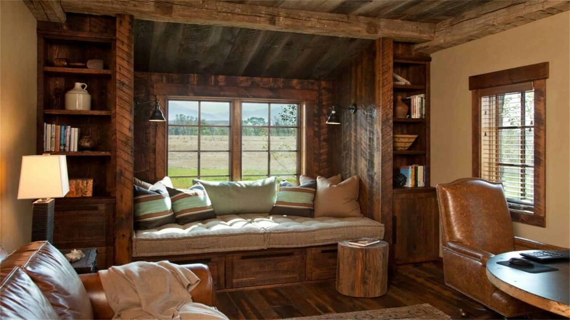 Built-in window seats are visually appealing and save space. Add layered cushions for maximum comfort.