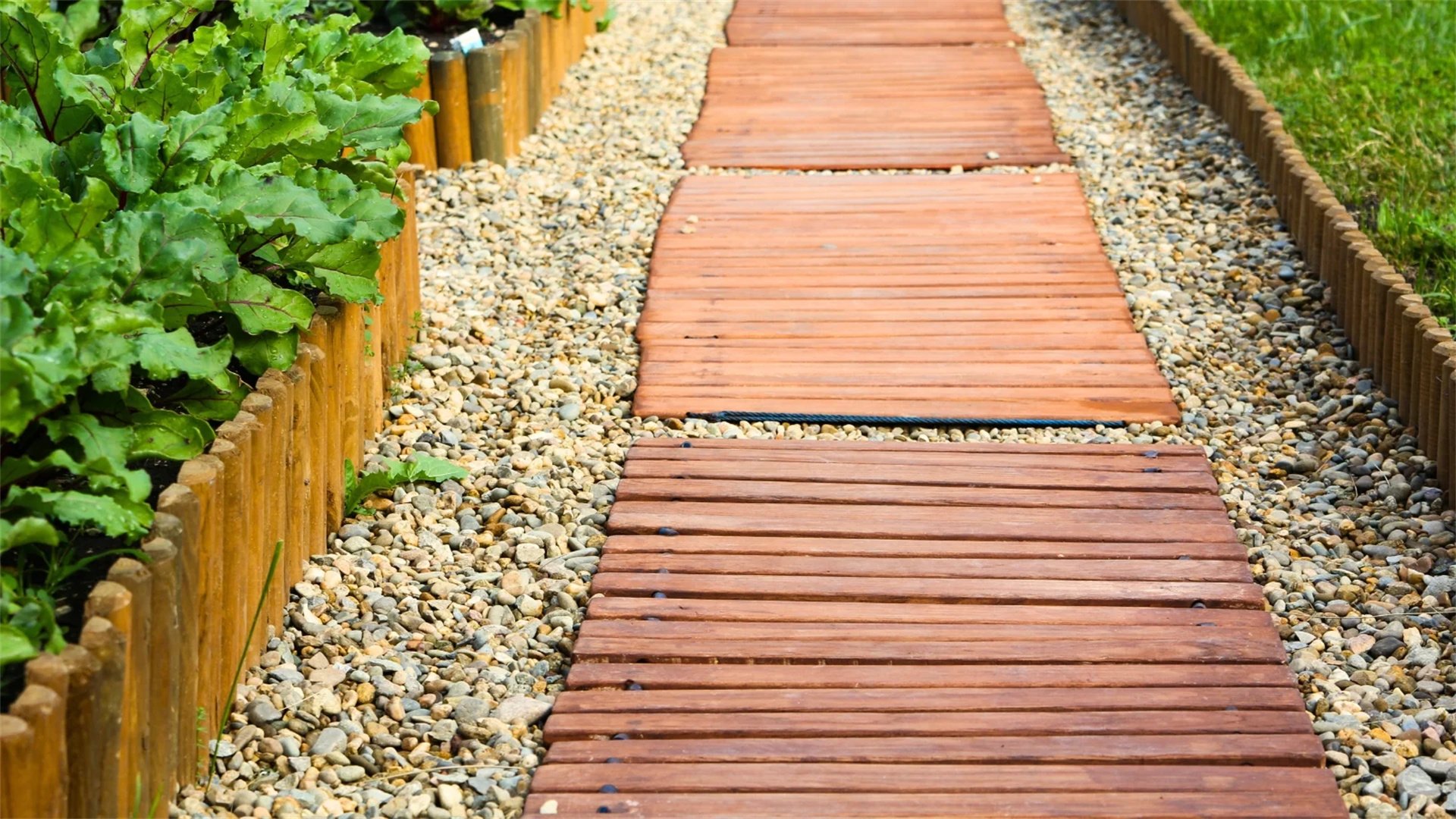 To enhance style, edge the path with plants. For function, choose mulch that decomposes slowly.