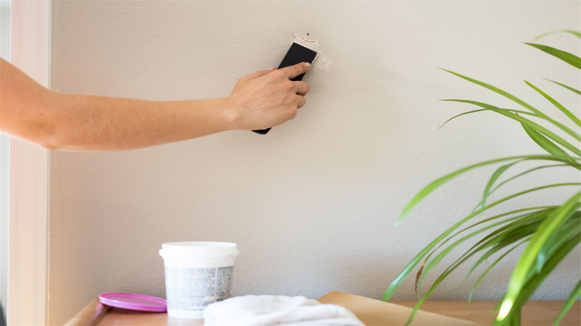 - Sand lightly: Once dry, use fine-grit sandpaper (e.g., 220-grit) to sand the spot smooth. Be gentle to avoid damaging the surrounding wall. Wipe away dust with a cloth.