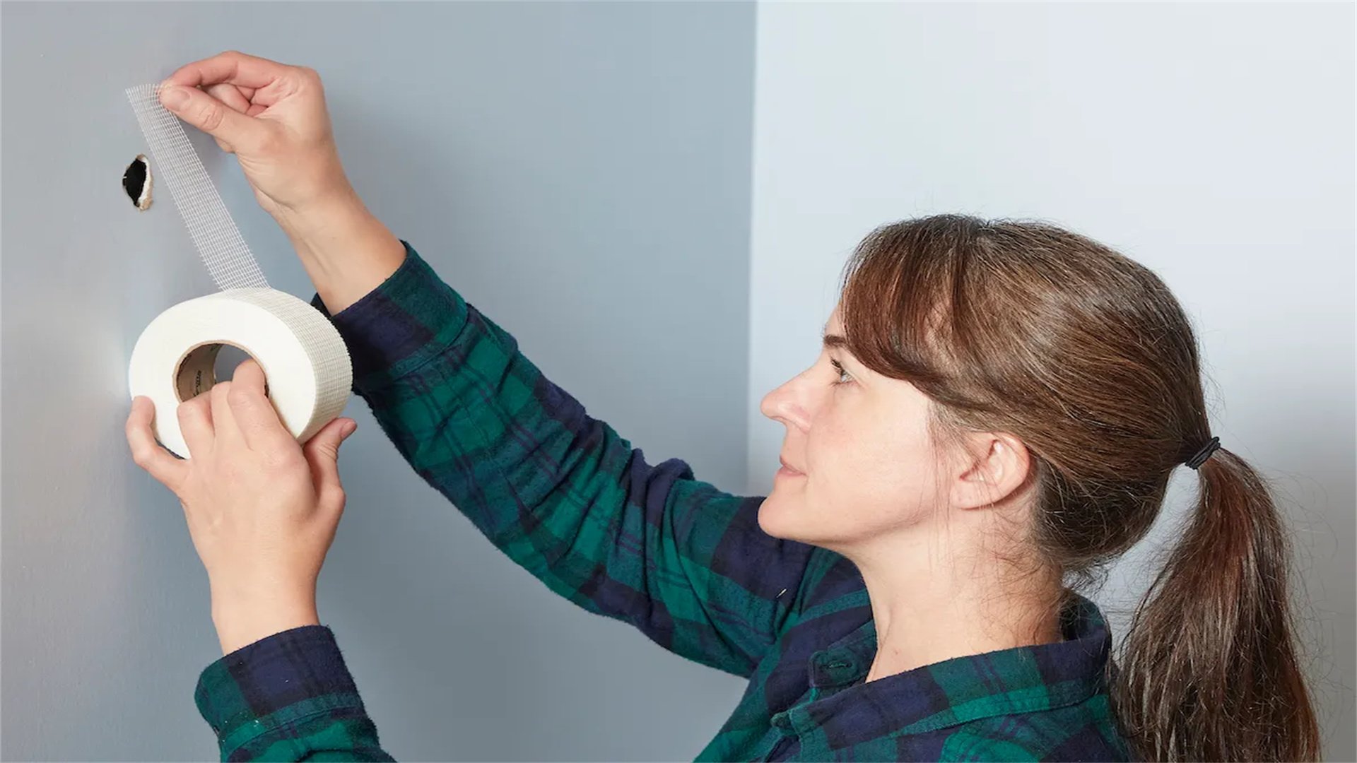 - Apply drywall tape: For cracks wider than 1/8 inch, place self-adhesive mesh tape over the crack, pressing it firmly to ensure it lays flat. This tape reinforces the repair and prevents the crack from reappearing.