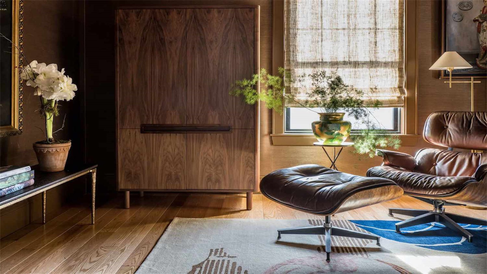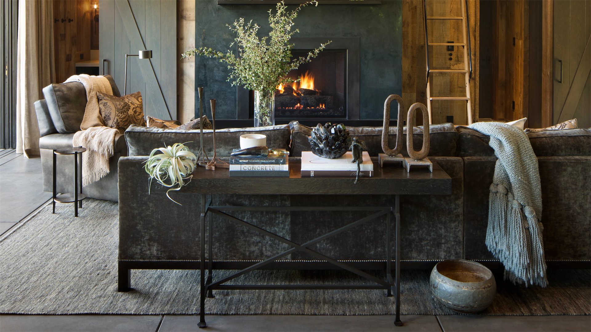 - Combine classic modern pieces like an Eames lounge chair with rustic elements like a stone fireplace.
