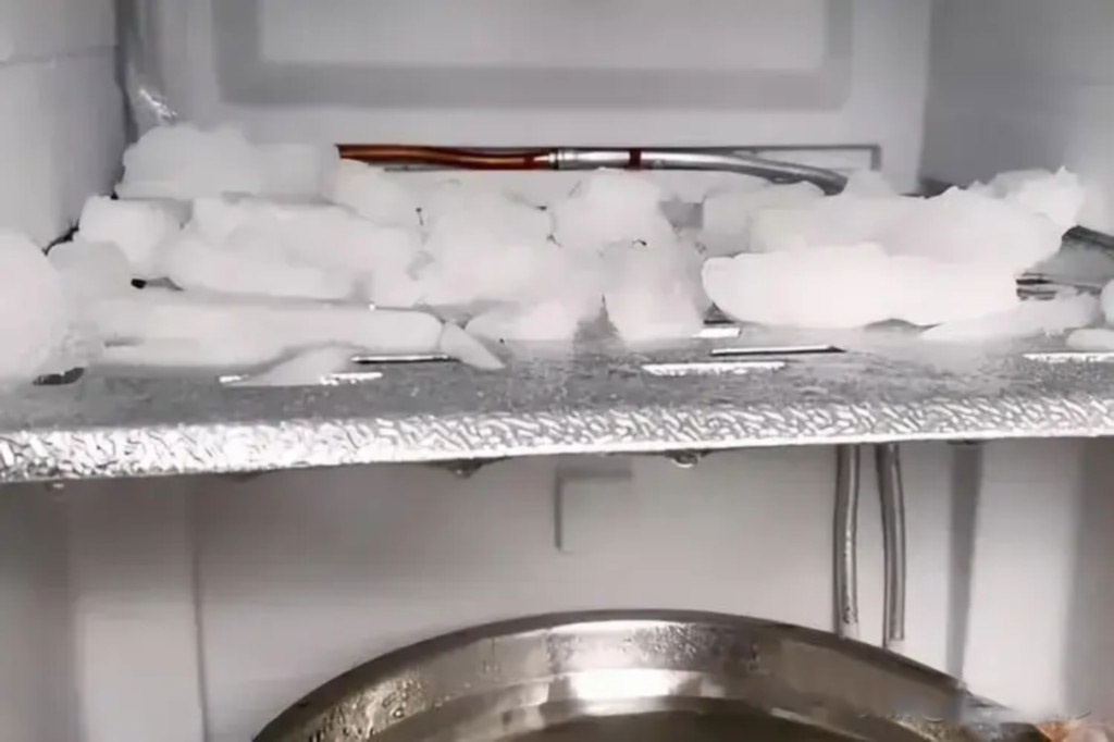 When the frost starts to melt at the point where it connects to the refrigerator, the ice will detach automatically, very quickly, without even needing the frost to turn into ice water. Simply pour out the ice water and ice from the bowl, and the refrigerator will return to normal operation.