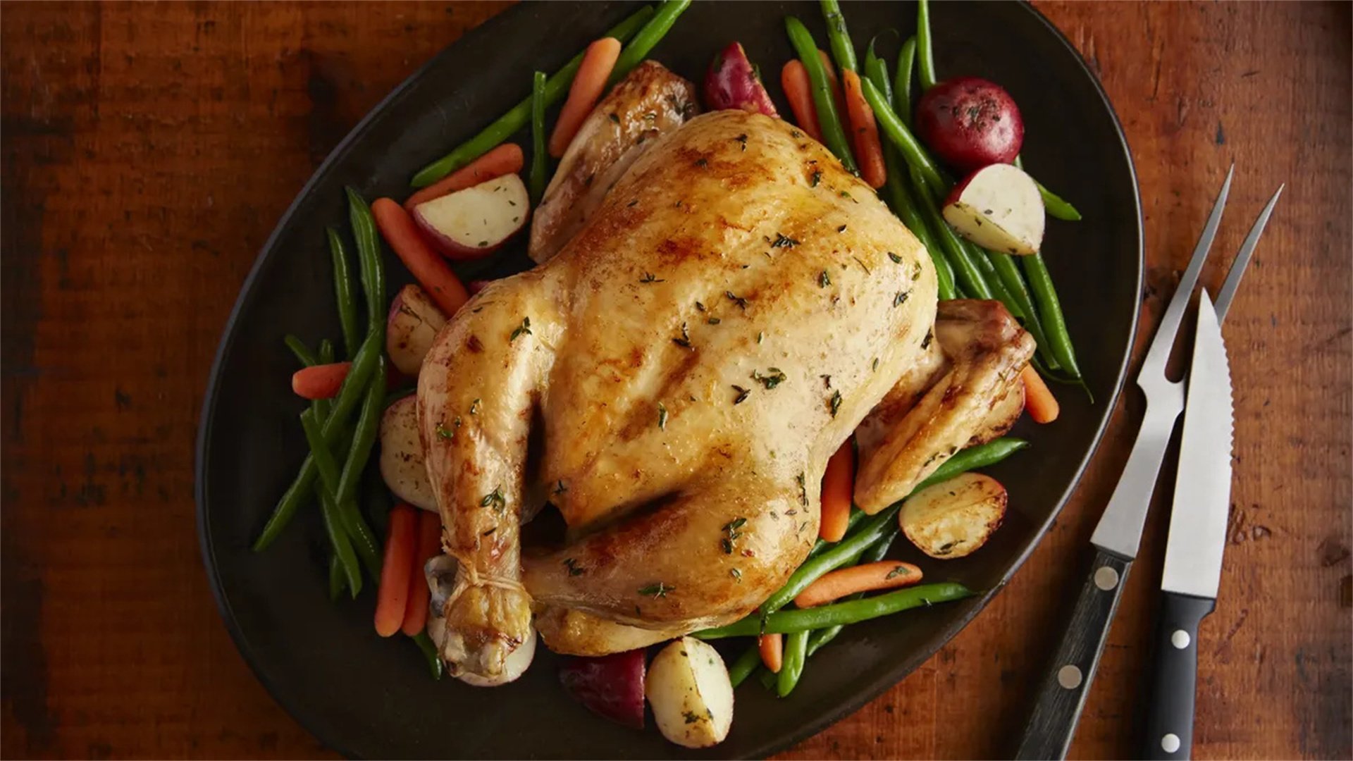 - Let chicken rest for 15 minutes before carving. Serve with roasted vegetables.