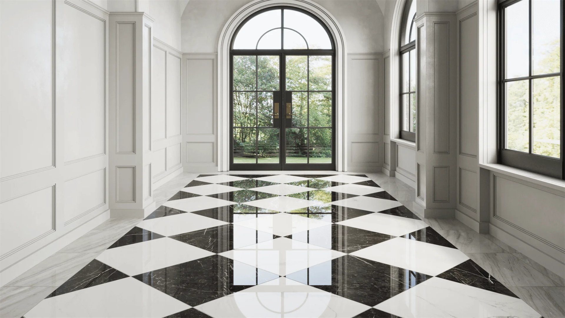 - Choose reflective materials: Opt for options like glossy porcelain tile, polished concrete, or engineered hardwood with a lacquered finish. For a softer look, use large-format light-colored tiles with minimal grout lines.